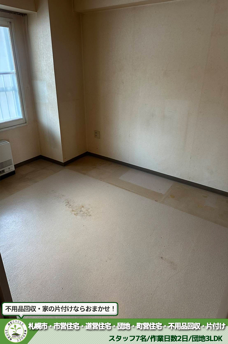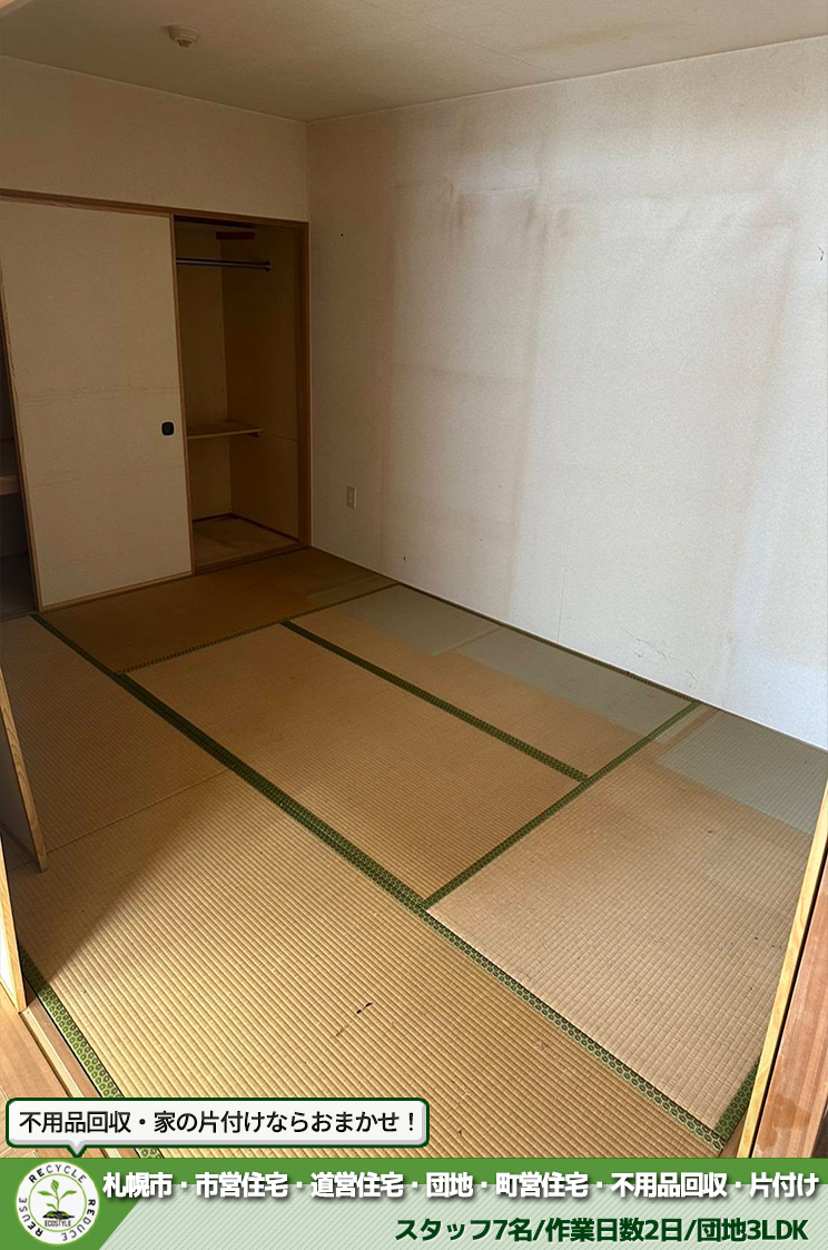 生活応援エコスタイルでは不用品回収・遺品整理・家の片付けを行っております。 今回は、札幌市手稲区の市営団地で不用品回収を環境事業公社とさせて頂きました。 スタッフ7名/作業日数2日/団地3LDK