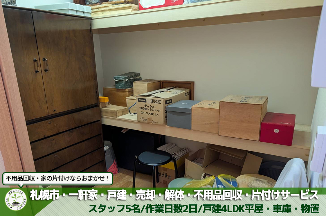 - 札幌市全域の家の片付け・遺品整理のご依頼は「生活応援エコスタイル」へご連絡ください