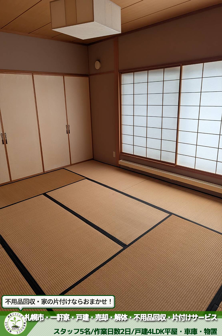 - 札幌市全域の家の片付け・遺品整理のご依頼は「生活応援エコスタイル」へご連絡ください
