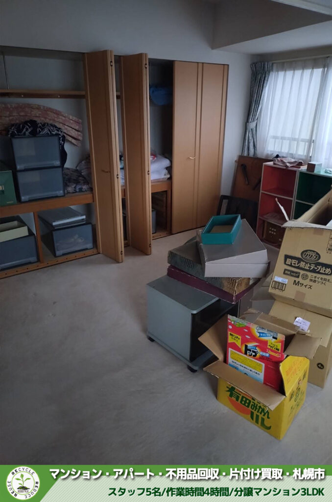 札幌市全域で「家・分譲マンションの片付け処分」「倉庫・蔵・物置などの片付け処分」「マンション・アパートなど賃貸物件の片付け処分」「テナント・オフィス・店舗などの事業所の引越し・閉店・撤退時の不用品回収」の無料ご相談・無料お見積もりをいたしております。