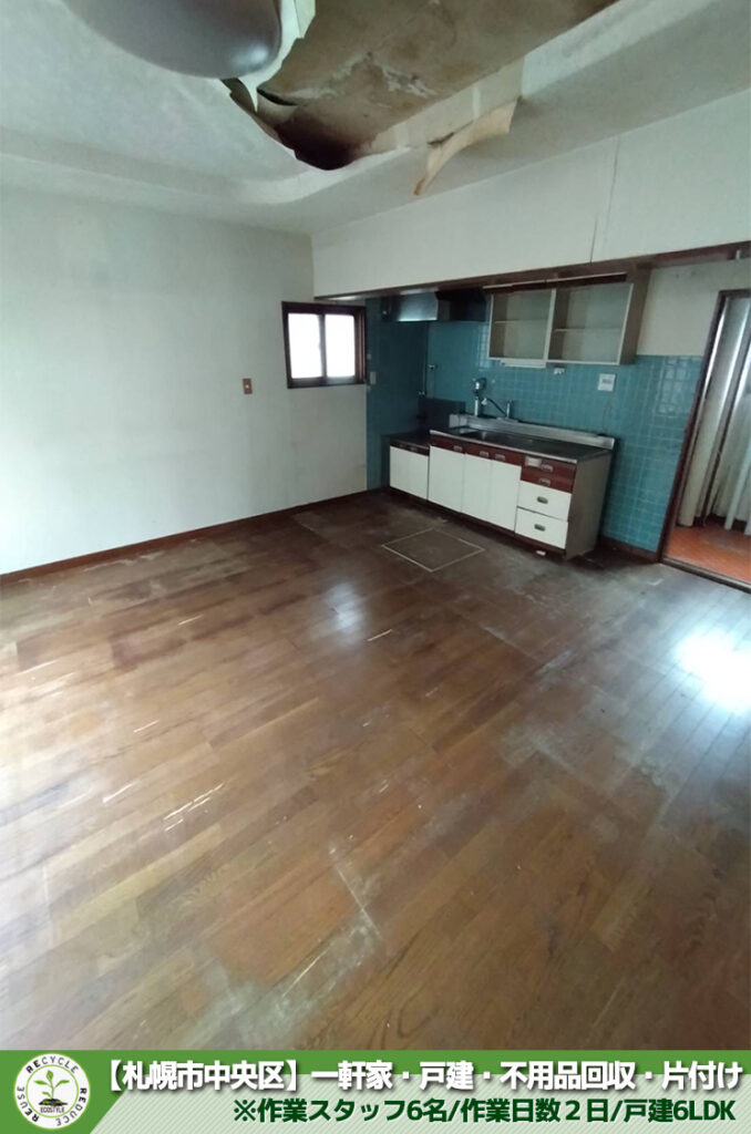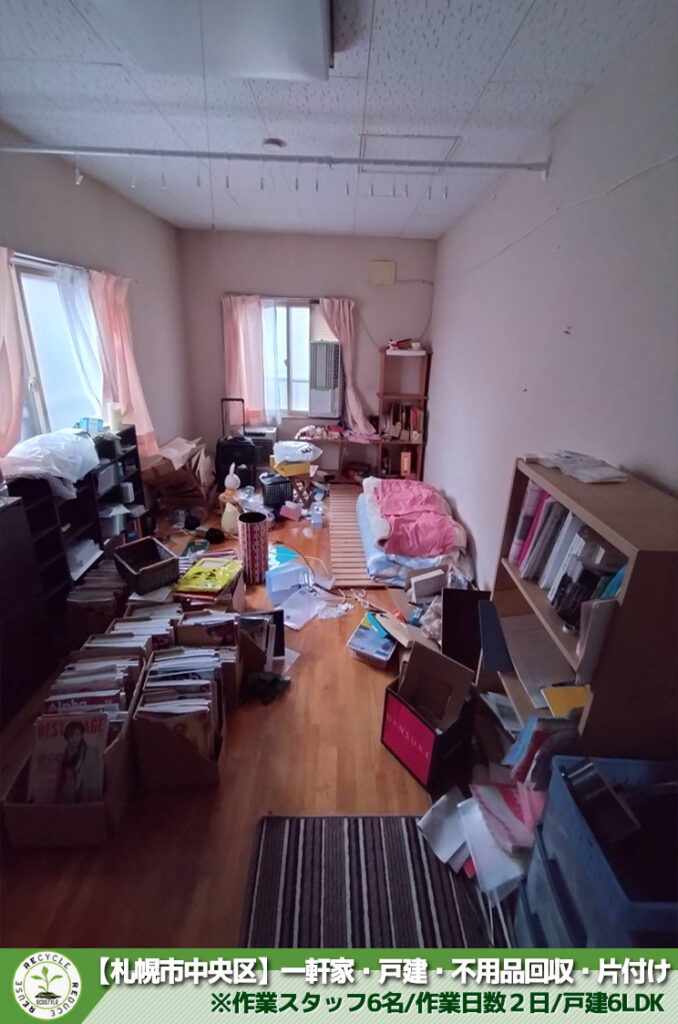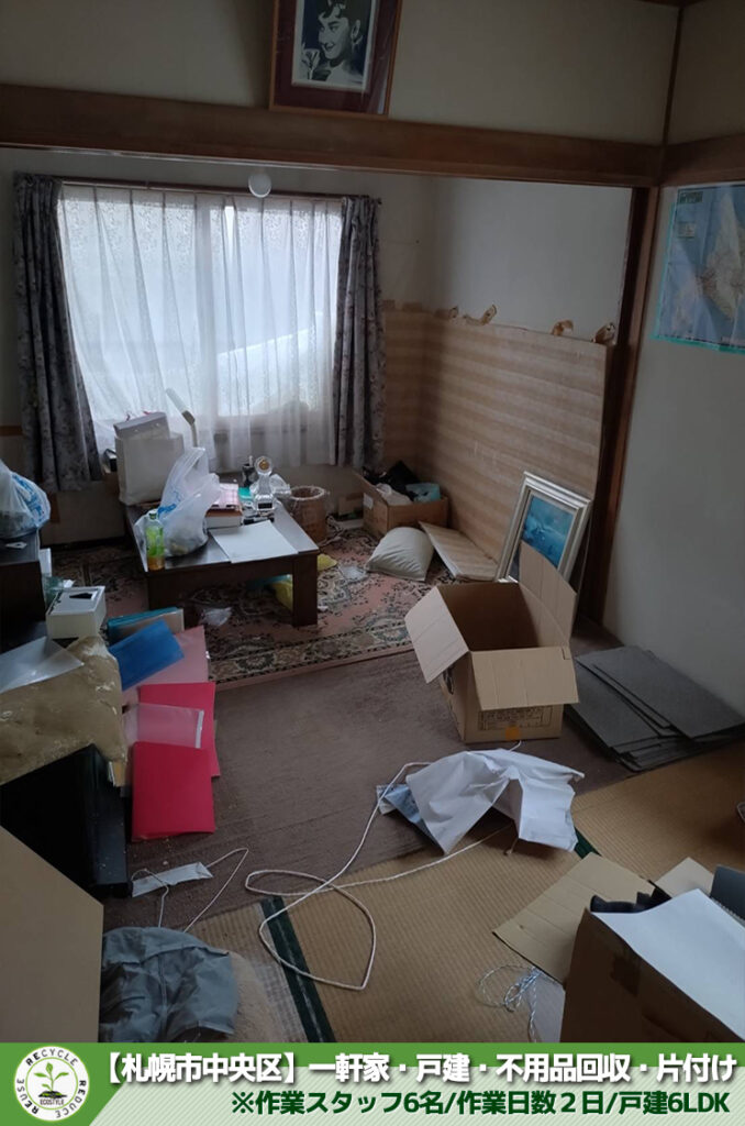 不用品回収や遺品整理の片付け現場実績多数!今回は札幌市・生活保護受給者様の不用品回収をさせて頂きました。※作業スタッフ6名/作業日数2日/戸建6LDK