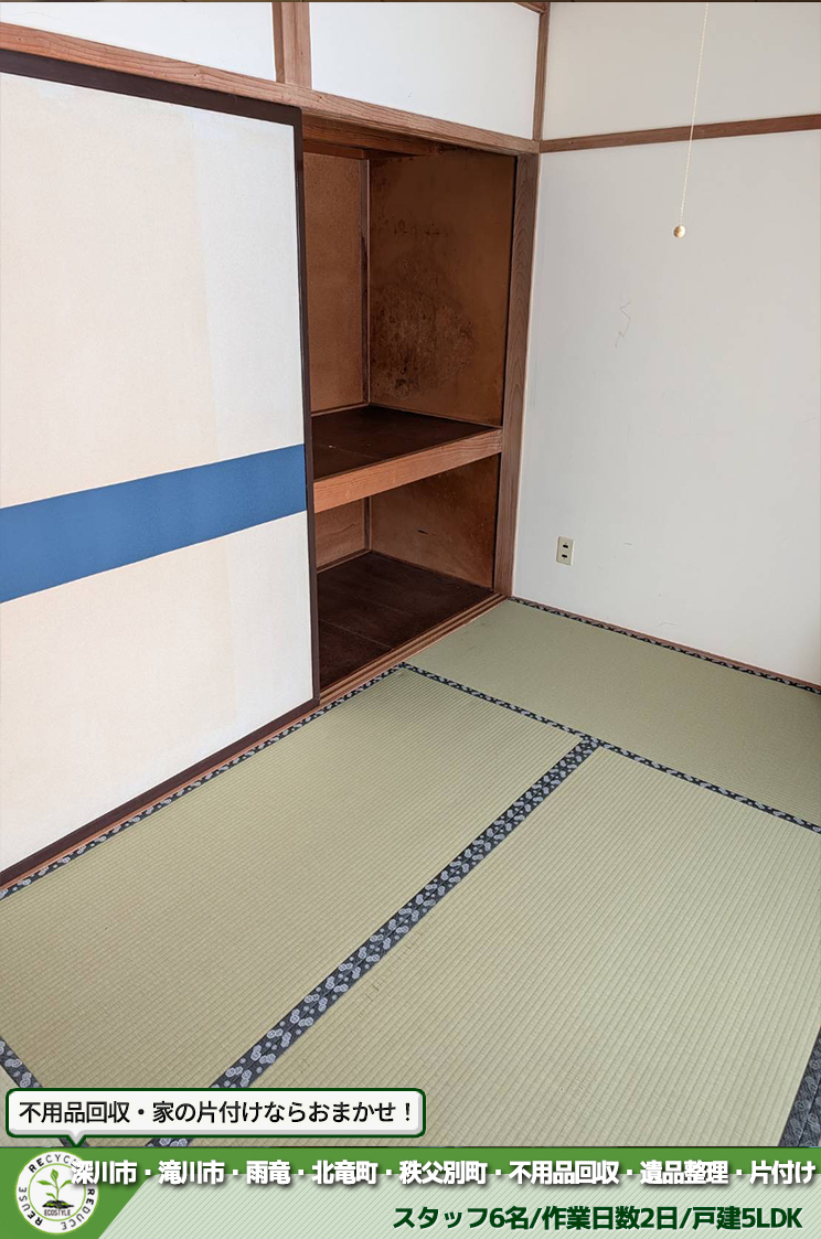 深川市・滝川市・雨竜・北竜町・秩父別町・不用品回収・遺品整理・片付けサービス(2026年実績)