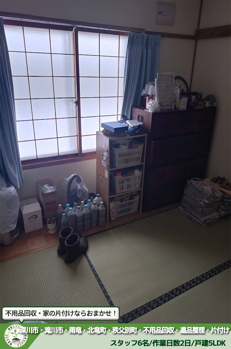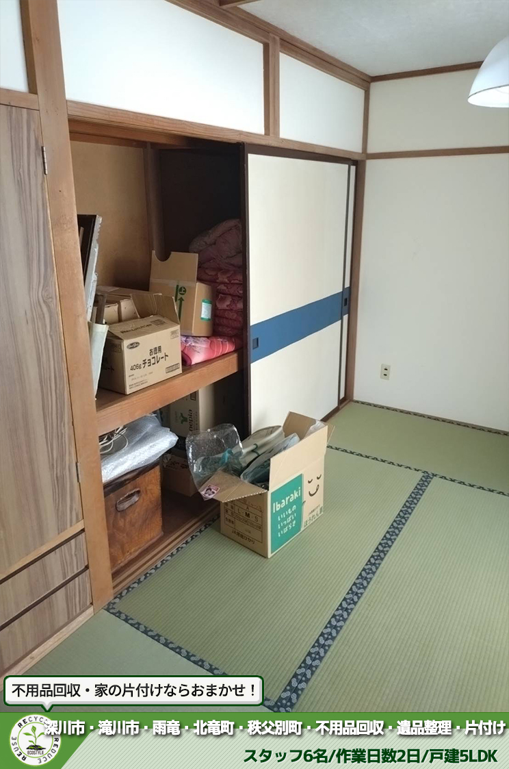 生活応援エコスタイルでは不用品回収・遺品整理・家の片付けを行っております。 今回は、深川市で売却に伴う不用品回収をさせて頂きました。